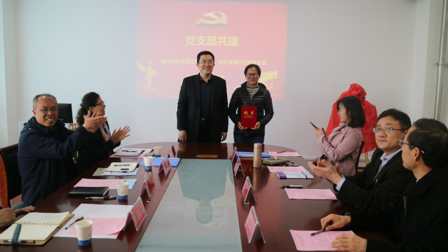 社区管理办公室党支部刘志伟与法学院第三学生党支部孟晶晶签署共建协议书