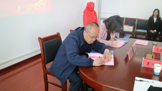 3月28日下午,社区管理办公室党支部和法学院第三学生党支部签约仪式在法学院2号教学楼会议室举行,出席会议的有法学院党总支书记张宗磊,法学院院长杨晓春,后勤管理处书记、处长蔡文,后勤管理处副处长杨德忠以及法学院教师代表、学生代表、社区管理办公室班子成员。社区管理办公室党支部书记孙奉霞主持。