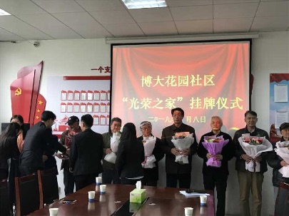4月8日山东理工大学博大花园社区举行了“光荣之家”挂牌仪式,挂牌仪式有序进行。首先是社区主要负责人表达对退役军人和军人家属代表等的崇高敬意以及亲切关怀。其次是由山东理工大学法学院学生代表向退役军人和军人家属代表敬献鲜花,由社区以及民政部门负责人颁发光荣牌。最后是退伍军人代表杨老先生讲话,杨老先生娓娓而谈,向我们讲述了二十载追梦军旅,把最美好的时光献给了军营。杨老先生一家两代人,两代七口兵,这是当之无愧的光荣之家。杨老以一个利落的军礼结束讲话,掌声同时连绵不断。