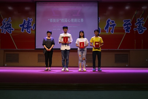此次比赛以“珍爱自我,悦纳青春”为主题,各学院学生参赛热情高昂,准备充分。经过初赛、复赛的严格筛选,最终共有8支队伍进入决赛。各参赛队伍紧紧围绕主题,从现实生活中的亲情、友情、爱情三个方面出发进行立意,用精彩的剧情、精湛的表演以及绚丽的舞台效果给我们带来了一场视听盛宴,将当代大学生朝气蓬勃、奋发向上的精神风貌以及他们对人生的思考及感悟展现的淋漓尽致。比赛中途,进行了易班抽奖环节,全体师生积极参与,现场气氛热烈。 经过激烈的角逐,评委老师的评判,最终评出一二三等奖和优秀奖。由评委老师上台为获奖队伍颁奖并合影留念。