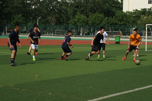 伴随着精彩绝伦的啦啦操表演,主持人致开场词并宣布比赛开始。比赛分为上下两个半场,伴随着裁判的哨响,比赛正式开始。双方很快进入状态,展开激烈拼抢,开场仅10分钟,15级毕业生代表队旗开得胜,攻破对方球门。现场观众的激情瞬间被点燃。这粒进球也使得2015级毕业生代表队在上半场一度占据主动,毕业生队带着两球领先的优势进入下半场。17、18级院队在中场休息的时间内迅速做出调整,下半场一开始,他们就展开猛烈的反扑,并很快取得成效。比赛进入白热化阶段,双方在防守与进攻上不敢有任何松懈,企图再次攻破对方球门。第46分钟,毕业生代表队打破场上僵局,再次取得领先,而17、18级队员很快稳住心态,将比分扳平!终场哨声响起,双方握手言和。赛后全体参赛队员以及裁判在场地中央合影留念,并由工作人员向15级毕业生代表队队员赠送纪念礼物。