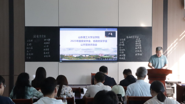 9月25日下午,法学院在2号教学楼323教室举办2025年度本科生国家奖学金公开答辩会。此次答辩会由学院党委副书记宋立平主持,评审委员会由学院领导及各专业代表教师、全体辅导员组成,部分学生代表参与并进行投票。