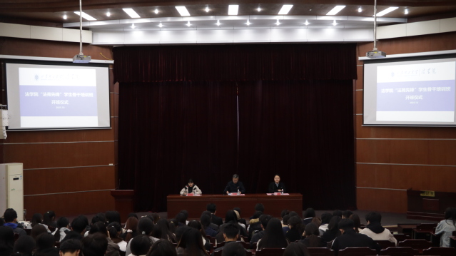 10月23日下午,法学院在模拟法庭举办第六期“法苑先锋”学生骨干培训开班仪式。学院党委副书记宋立平,辅导员胡涛、宋明利,法学院学生骨干参加。