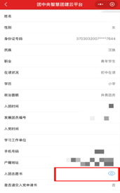 (4)下滑找到入团志愿书一栏,并点击蓝色眼睛图标。