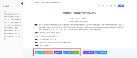 例如,以“行政管理”为例,带锁的文章是不能下载的,不带锁的是可以下载的。点进去一个可以下载的文章之后,可以任选下载方式(建议选择PDF格式)。(如下图)