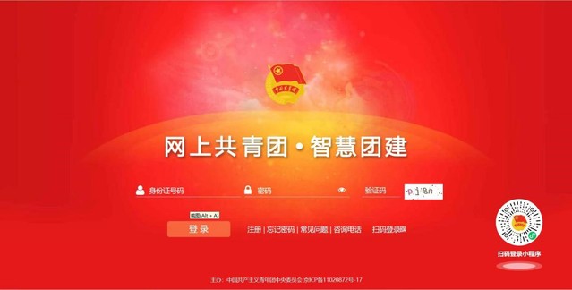 ①微信小程序搜索“团中央智慧团建云平台”,输入身份证件号、密码、验证码后点击登录。