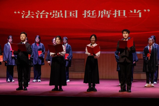 郭庆兵指出,学校高度重视法治工作,坚持以习近平法治思想为指导,全面推进依法治教、依法治校、依法办学,治理体系和治理能力现代化水平不断提升;注重把宪法宣传教育融入日常,让尊法学法守法用法成为全校师生的行动自觉。他表示,学校将持续深化法治校园建设,推动法治教育与人才培养、地方治理协同发展,着力培养造就更多法治人才,为法治中国建设作出新的更大贡献。