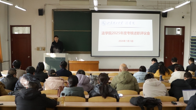2026年1月6日,法学院在2号教学楼127室召开2025年度考核述职评议会。校党委常委、副校长郭庆兵主持会议。