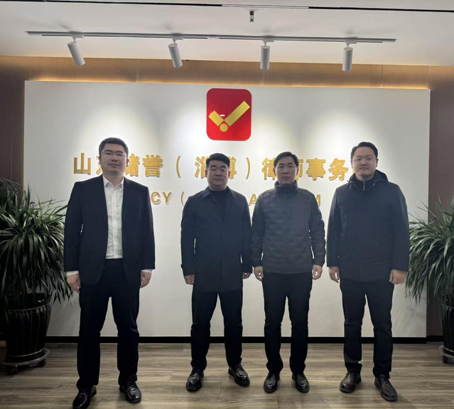 在淄博,学院领导一行走访山东推进智能装备有限公司总经理周贞,并参观山东储誉(淄博)律师事务所等校企合作单位。