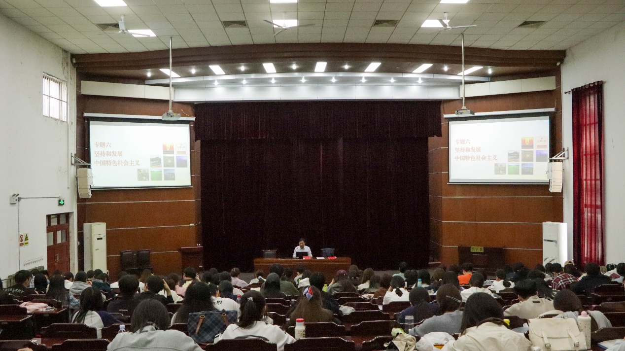 仪式结束后,田立超讲授《高举中国特色社会主义伟大旗帜》专题党课。